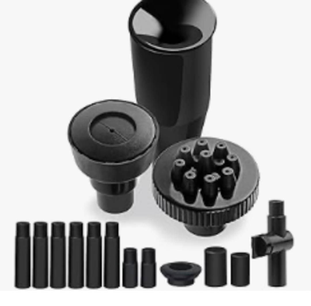 - One, or an assortment of nozzles. These have the same diameter as the hose from the water pump.