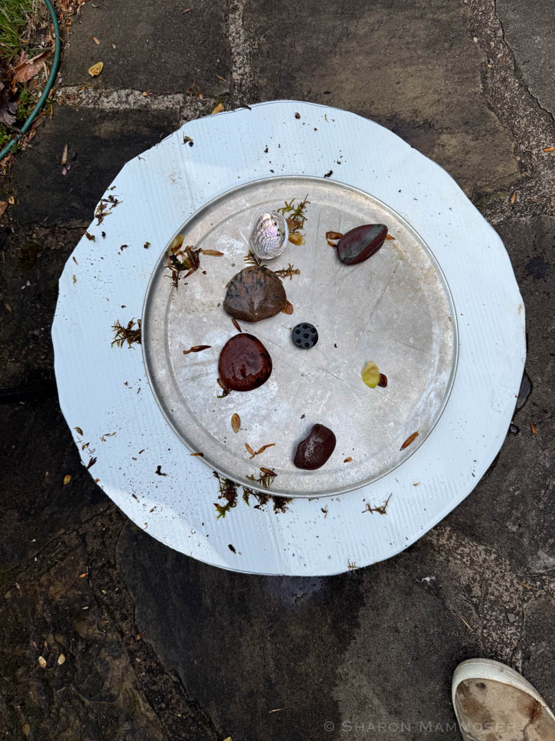 I learned a lot in my previous two versions. For instance version number two had a flower pot with a diameter of 15 inches. This proved to be too small, as my pump often threw the water out of the pot, and I was having to refill it many times each day. Version number one looked amazing because I glued on colorful rocks and even tiles in some places, but got filled with algae and became slimy in no time, was hard to clean, and difficult to adjust. The water often sprayed out of the pan, and the spray was often too forceful and the birds didn’t like it.