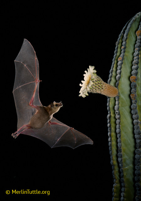 3. Pollination When people think of pollinators, bees, beetles, and butterflies likely come to mind first, but bats are also on this list. Did you know 70% of all tropical fruits, including mangoes, peaches, bananas and dates need bats for pollination? Like tequilla? Then you have to appreciate bats because they pollinate the agave plant, as well as hundreds of species of cactus. A popular fruit that grows in Southeast Asia, called a durian, requires bat pollinators. Merlin says “Sales from this fruit account for more than a billion dollars annually.”