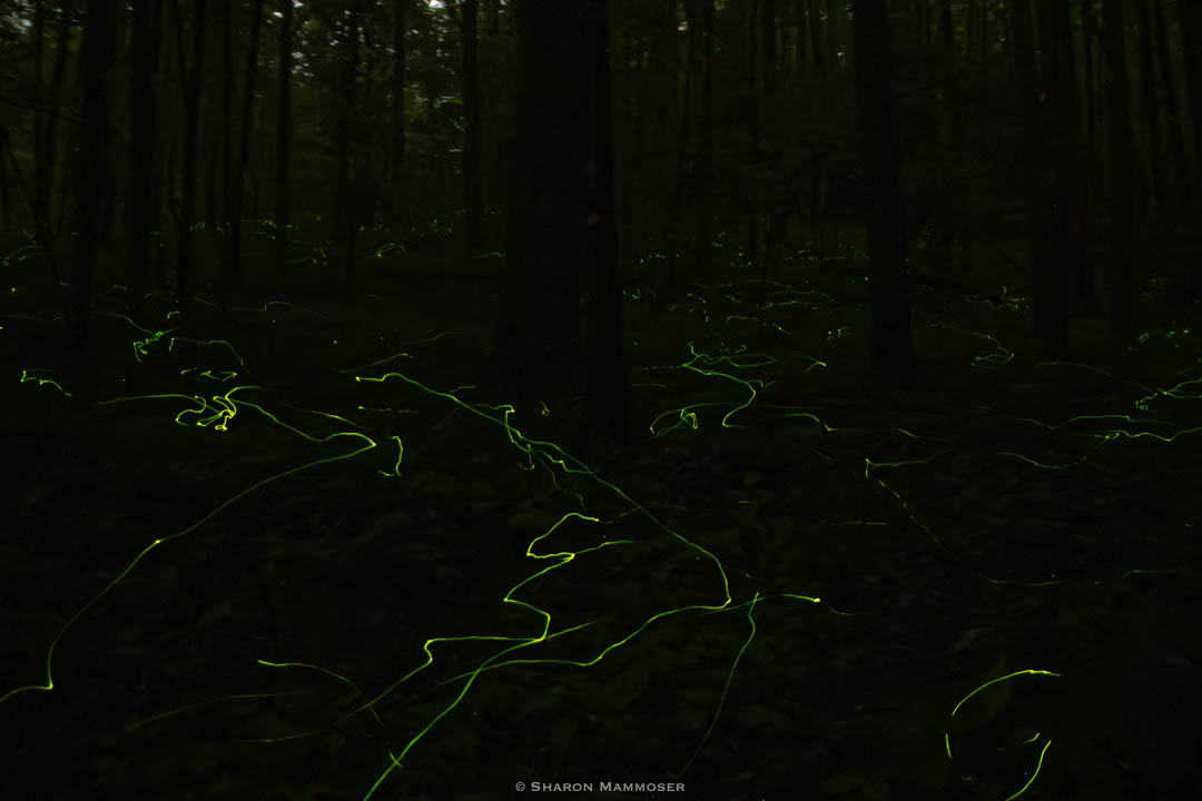 Last night I was hosting a private event at my house to see the blue ghost fireflies. As many of you will know, these very special fireflies are found only in North America. They require undisturbed, moist leaf litter and darkness. When the males move around through the forest, they turn on one or both of their tiny lights for up to a minute. A person witnessing this sees light trails moving silently through the pitch blackness. It is pure magic– food for the soul! I experience it every single night for around two weeks every May and never get tired of it. In my mind, it is a silent symphony, a joyful moment I hold with me to replay again and again when life’s troubles become overwhelming.
