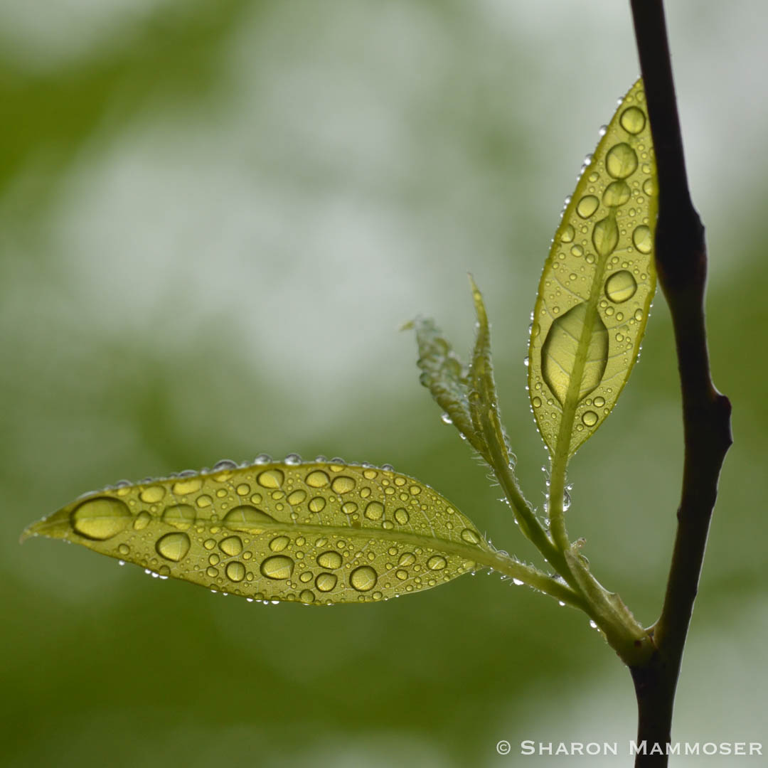 Raindrops on new leaves.