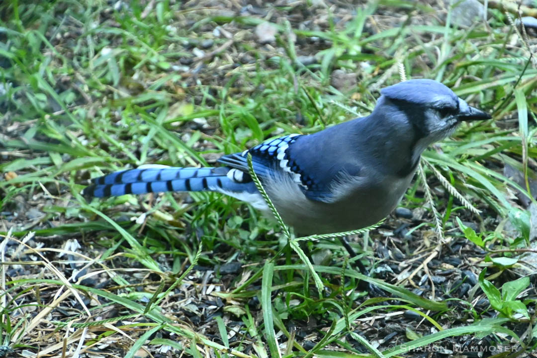 Blue jays will feed on the ground