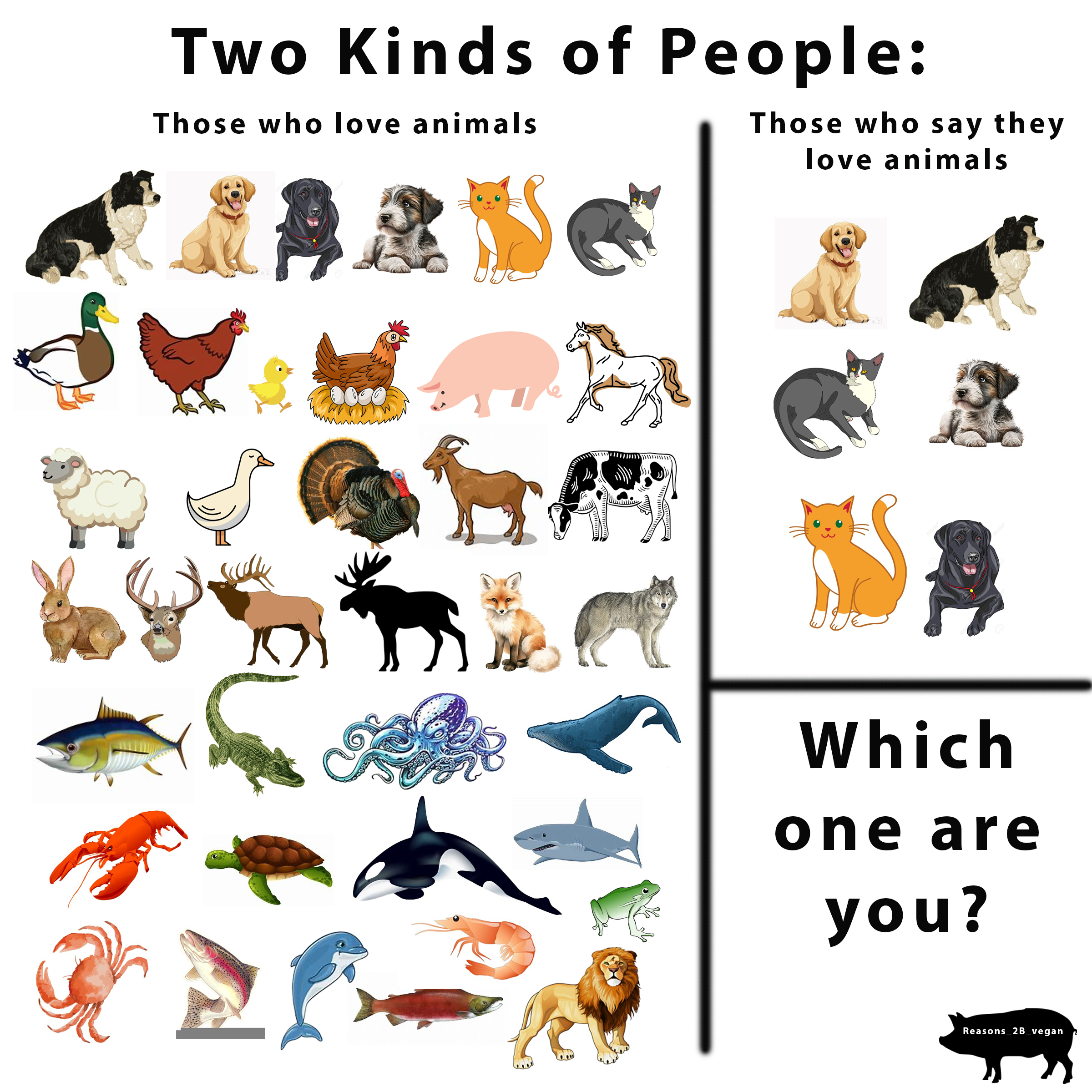 Do your values, your deeply-held beliefs, your very MORAL COMPASS– do these match your actions? Are you aware that you vote every day for the world you want with the products you buy? Are you against animal cruelty? Or only cruelty to dogs and cats? Is cruelty to pigs and cows okay? Does it make sense that you call yourself an animal lover, but regularly–in fact at least three times each day–support animal cruelty– because you consume animal flesh and dairy products? Do you think loving dogs and cats, but eating cows, pigs, chickens, goats, geese, turkeys, salmon, shrimp, lobster, octopus, and other animals we regularly eat is acceptable? Why is that? Why are these other animals exempt from protections and absence of cruelty? Why do you think a dog deserves to be treated like a member of your family, while a cow or pig receives no kindness or compassion? How do you think slaughtering any animal who does not want to die can be called humane? Why do we not have to treat cows or pigs, fish, lobsters, shrimp, octopus, and others, humanely? As an intelligent, civilized human being, do you think paying money to people to slaughter sentient animals like pigs and cows is truly something an intelligent, civilized person or society would do? How do you defend this contradiction?