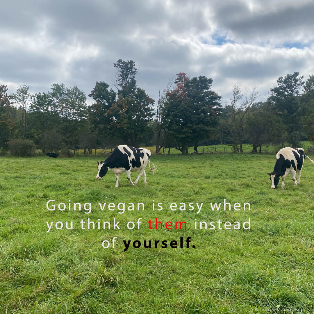 I, and every vegan I know, has said in their past, “I could never be vegan!!” It’s not something any of us ever set out to be. But once you learn about the cruelty in the dairy industry, once you see the Mama Cows chasing after the truck with their stolen babies, or hear their cries of anguish, or recognize their calves’ look of bewilderment at being separated from their Mothers, it’s impossible to unsee or unknow these things. The trauma inflicted on these gentle animals is heartbreaking, and not something a truly compassionate person would not do. Being vegan is not about giving something up, it’s about stopping the practice of taking something that was never ours to begin with.